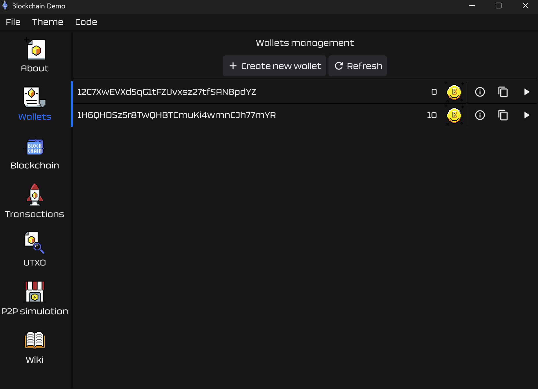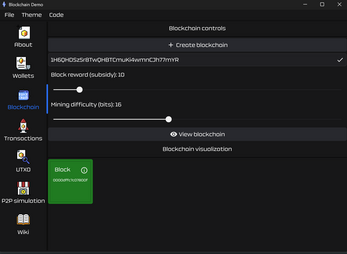 A graphical blockchain simulator built with Go and Fyne. Visualizes core concepts like Proof-of-Work, UTXO-based transactions, mining, mempool, wallets, and block structure in an interactive and educational way.